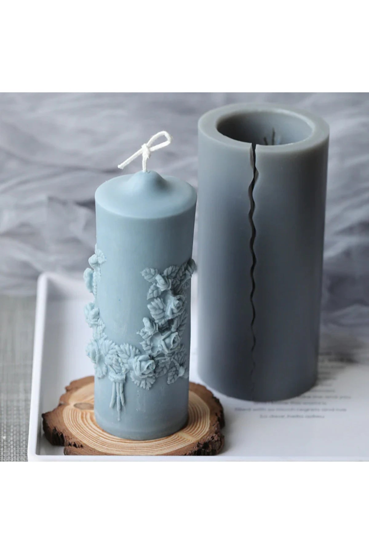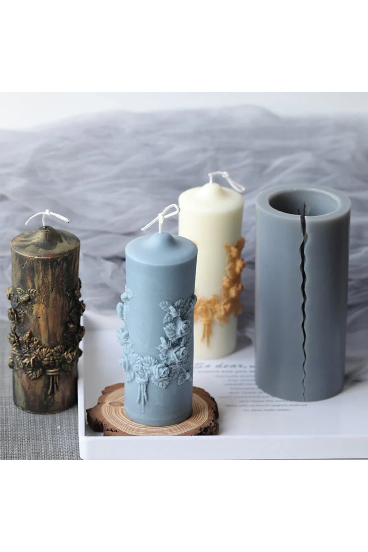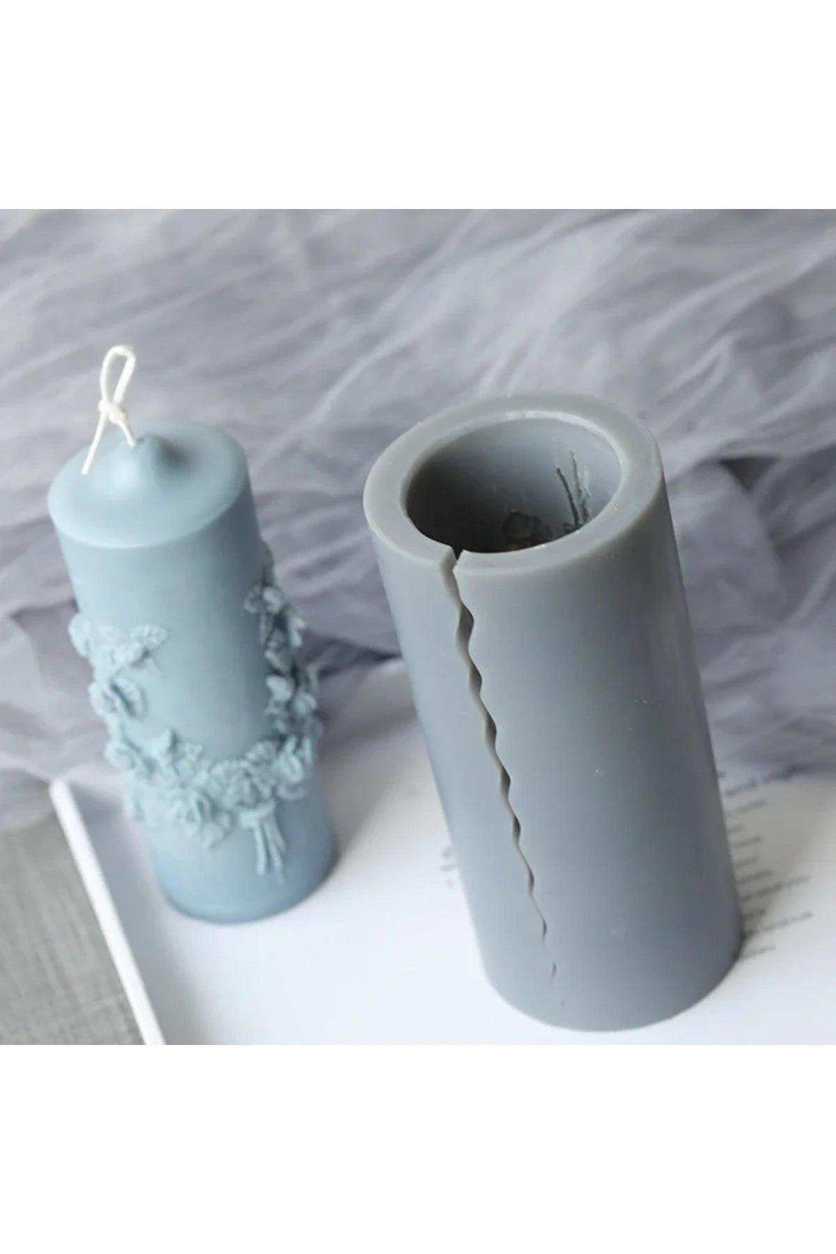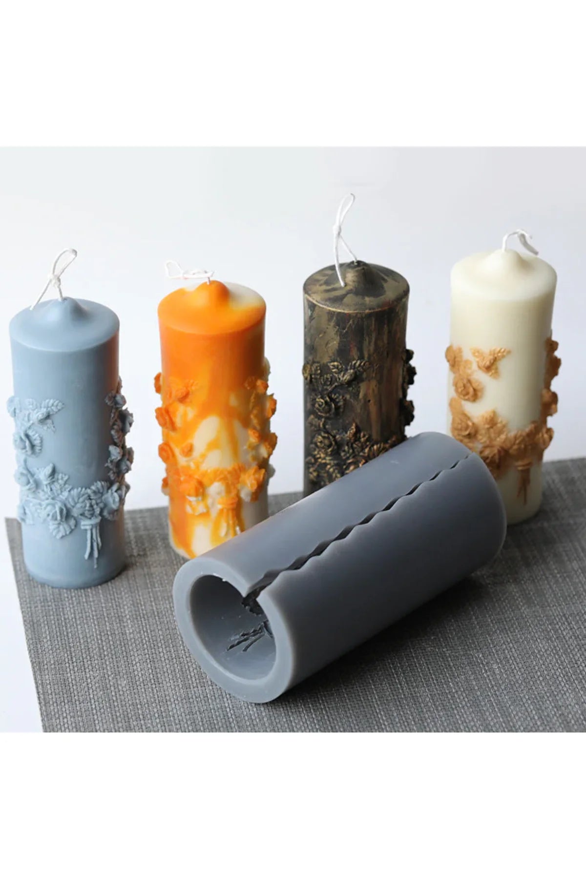 16cm Carved Cylinder Shape Silicone Candle Mould